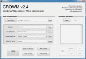 Optični simulator CROWM je bil primarno razvit za optično analizo in optimizacijo tankoplastnih optoelektronskih struktur v kobinaciji z debelo plastjo, pri čemer je debela plast lahko teksturirana na eni ali obeh straneh. Simulator ob upoštevanju realistične geometrije tekstur, debelin plasti in optičnih lastnosti materialov izračuna totalno odbojnost, prepustnost in absorpcijo v vsaki izmed plasti strukture.